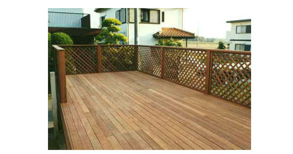 イペは港湾、岸壁のウッドデッキにも使われているほどの高耐久材で、水のかかるような条件の悪い場所でも20〜50年は保つといわれています。 通常の使い方なら半永久的に使えます。数あるウッドデッキ材の中で「最強はイペ」と言っても過言ではありません。 耐腐朽性に富むため薬剤処理はいっさいされておらず、環境にも負荷をかけません。