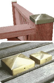ヨットや客船にも使われる真鍮を、贅沢にも3mmの厚みで成形しました。 鋳造に金型ではなく、砂型を使って作るため、ハンドメイド特有の暖かみがあります。 木材の色によく馴染み、アクセントを加えることでウッドデッキの雰囲気をいっそう盛り上げます。 耐久性と装飾性を兼ね備えた、ウッドデッキ用の最高級パーツです。 セットになっているステンレス製のビスもアンバー色に染めています。